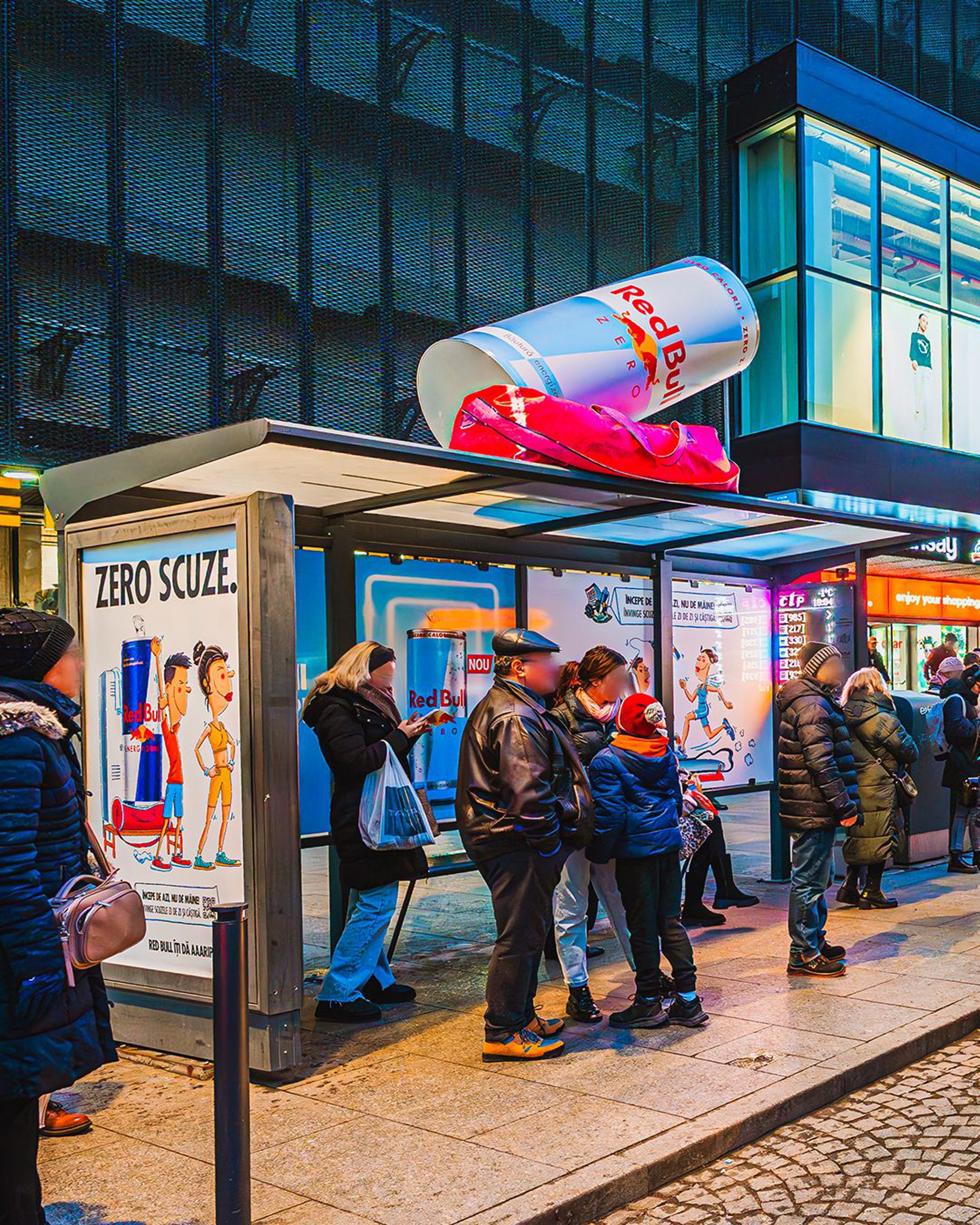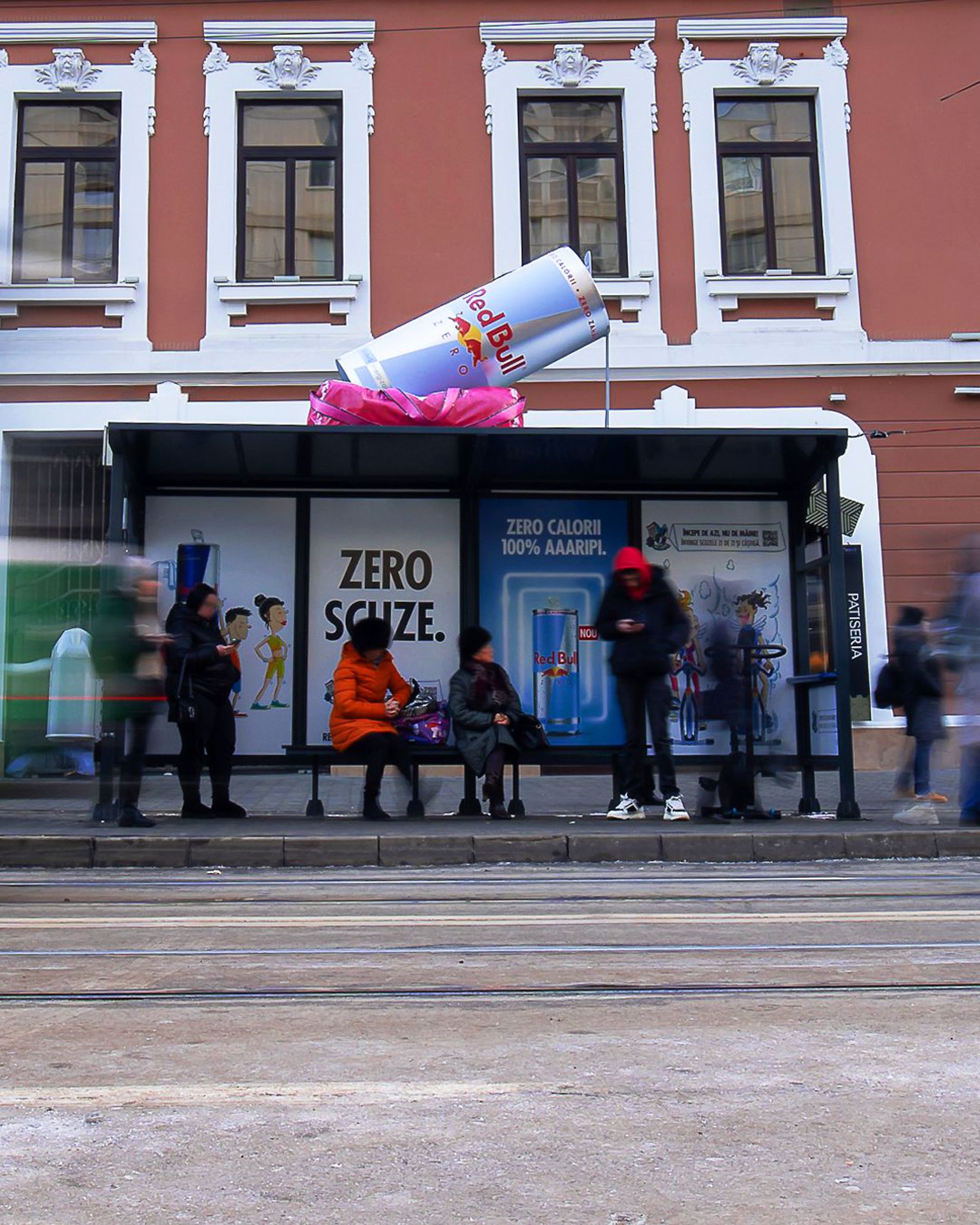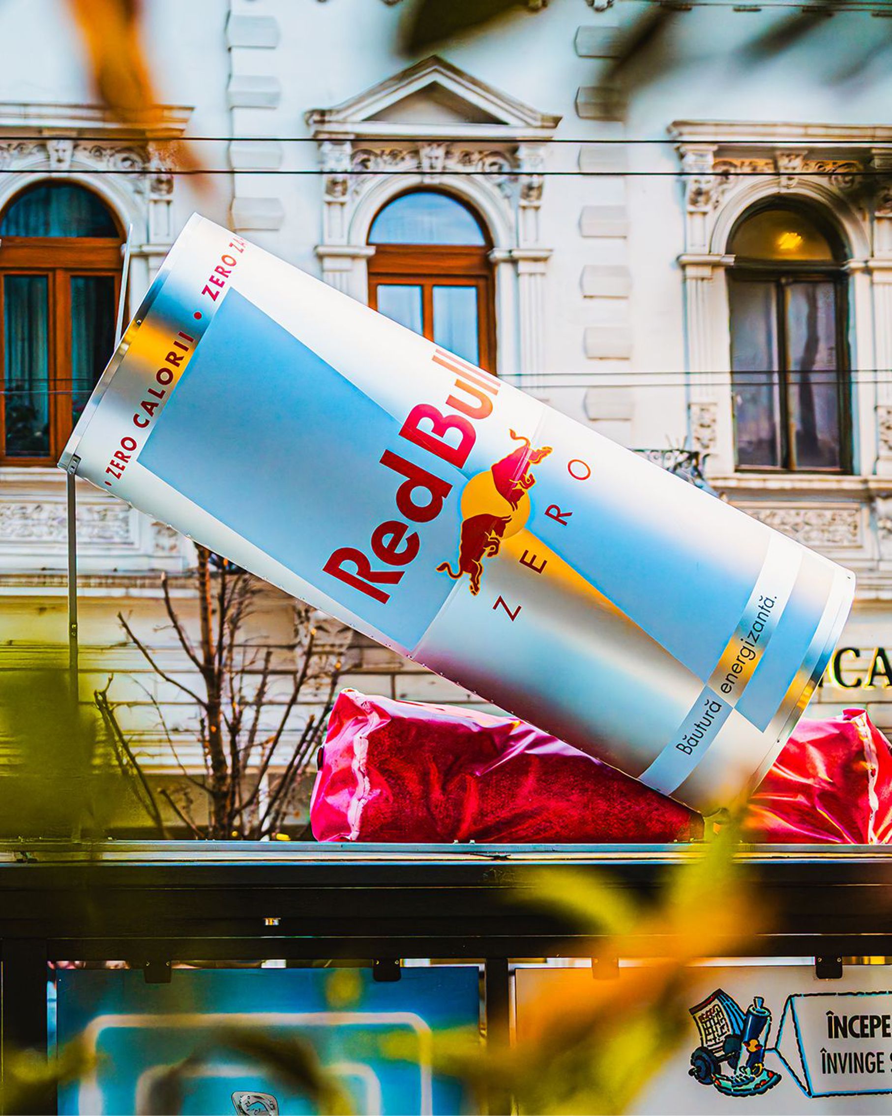– stații promoționale cu doze gigant Red Bull, realizate pe structură metalică personalizată