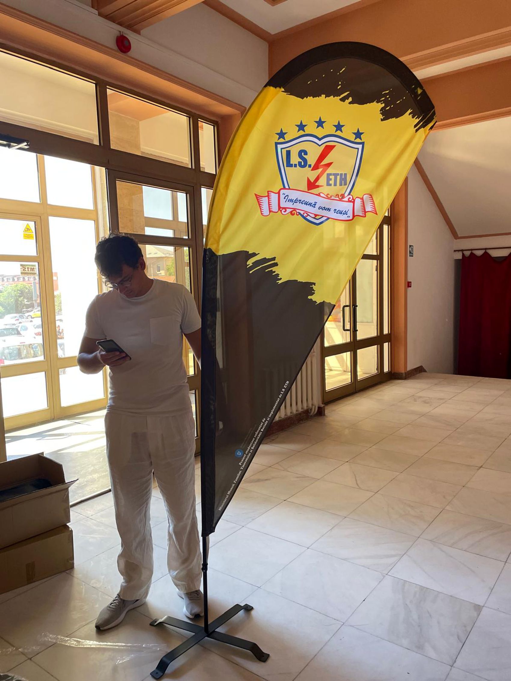 - suport printat (banner textil sau PVC)